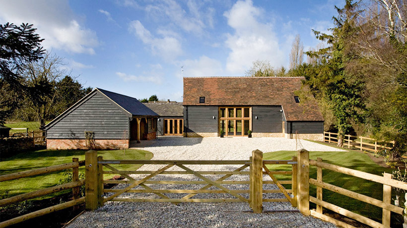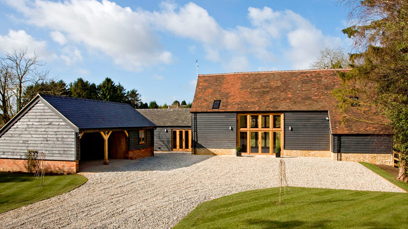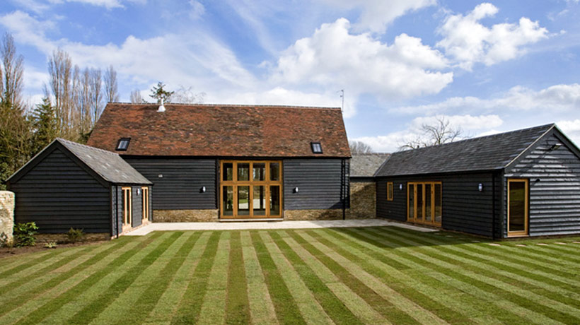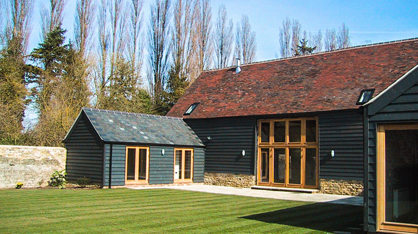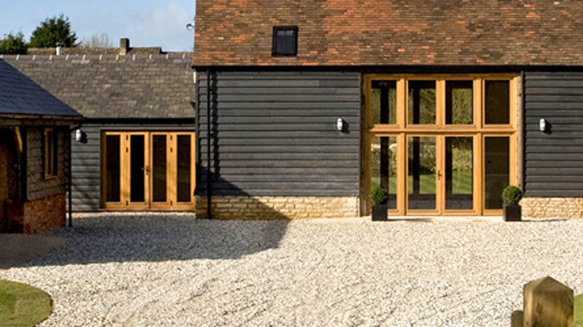 We were approached by architects practice to supply joinery for their barn conversation project in Oxon. Architects specified OILED OAK FLUSH FRAMES. Oiled oak weathers with time and changes colour to silver/ grey. Project involved big glazed screens to fill two large openings, main entrance doors, French doors, imitation of the door and windows. Due to the size both glazing screens had to be delivered in two parts. Lower part of front screen contained main entrance door. Lower part of back screen contained French door. After installation of upper part, the joint was covered with timber weather drip. The area behind one of the original doors was designed as a bathroom but the door had to stay in its original position. To solve this problem the architect specified an imitation of the door. All windows and doors were delivered readily glazed. Windows were fitted by team appointed by developers.